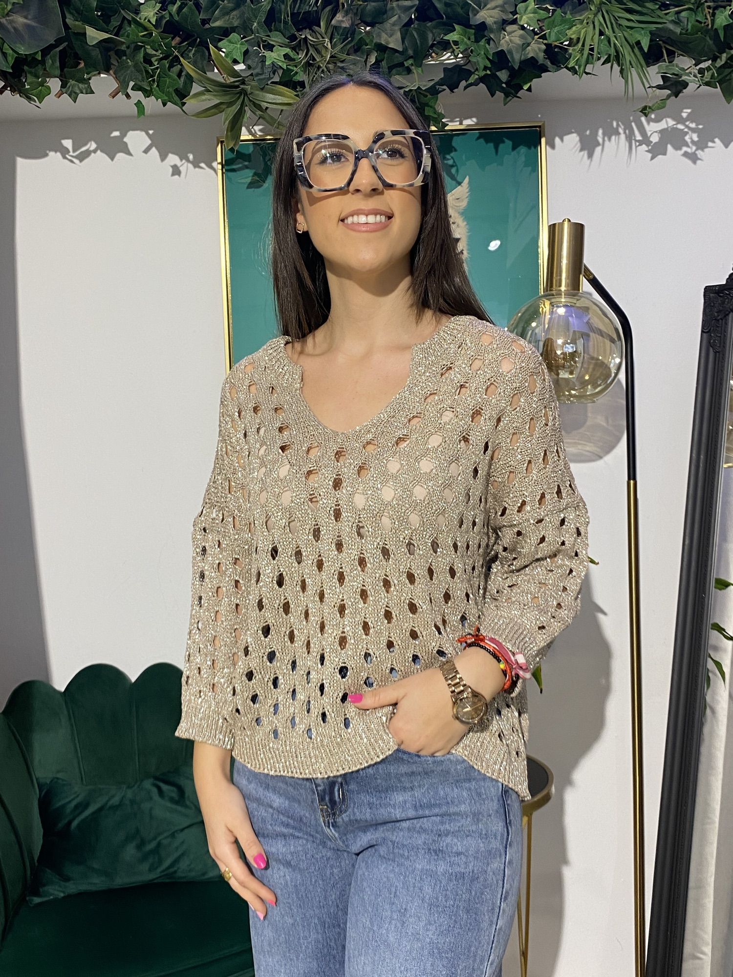 Un jersey corto oversize con lurex es una prenda moderna y llamativa que combina la comodidad de un jersey holgado con el brillo sutil y elegante del lurex. Es perfecto para añadir un toque de glamour a cualquier look, ya sea para ocasiones casuales o más arregladas.